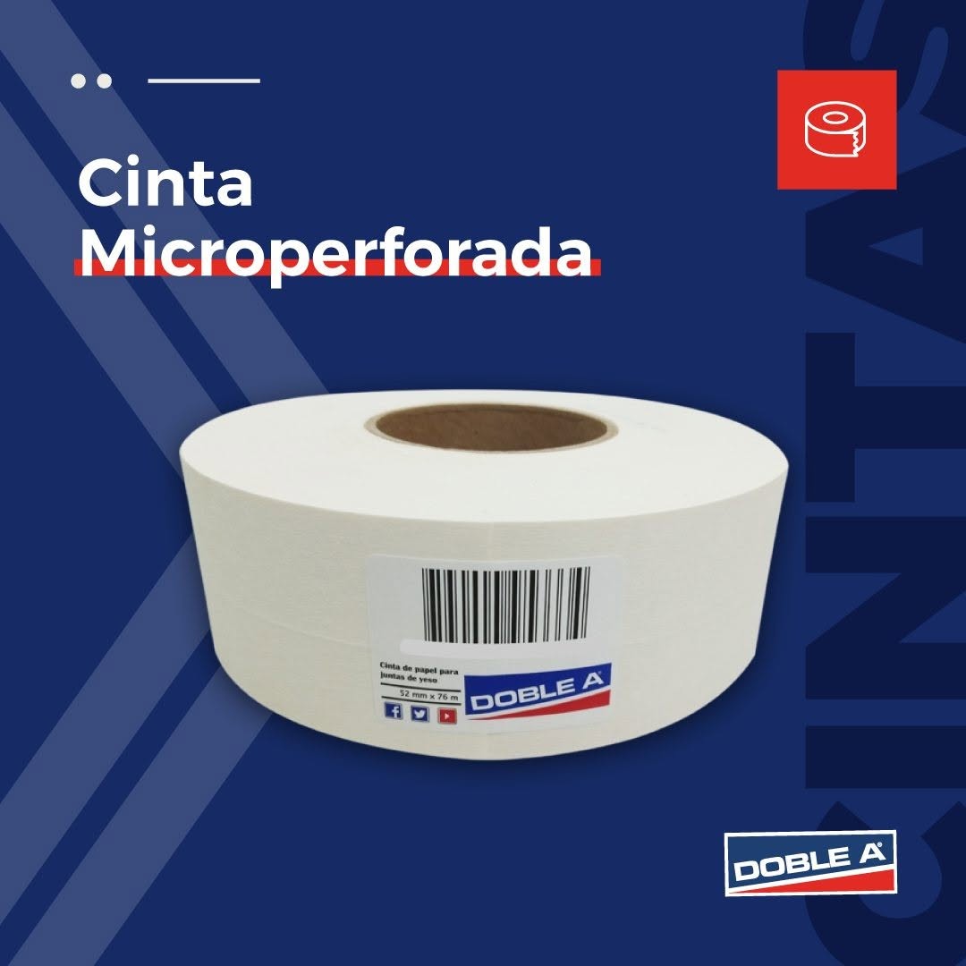Esta cinta viene premarcada en el centro para facilitar la unión de las placas de yeso. Además, sus microperforaciones evitan la formación de globos, ya que el exceso de aire en la masilla se libera brindando mayor adherencia, resistencia y firmeza a la junta. De corte fácil y gran resistencia.