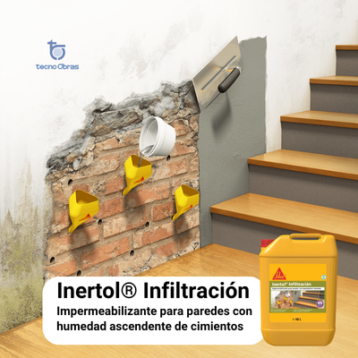 Inertol® Infiltración es un impermeabilizante líquido a base de siliconas, de baja viscosidad, para impermeabilizar muros de ladrillos macizos que presentan humedades provenientes del suelo por ascensión capilar.